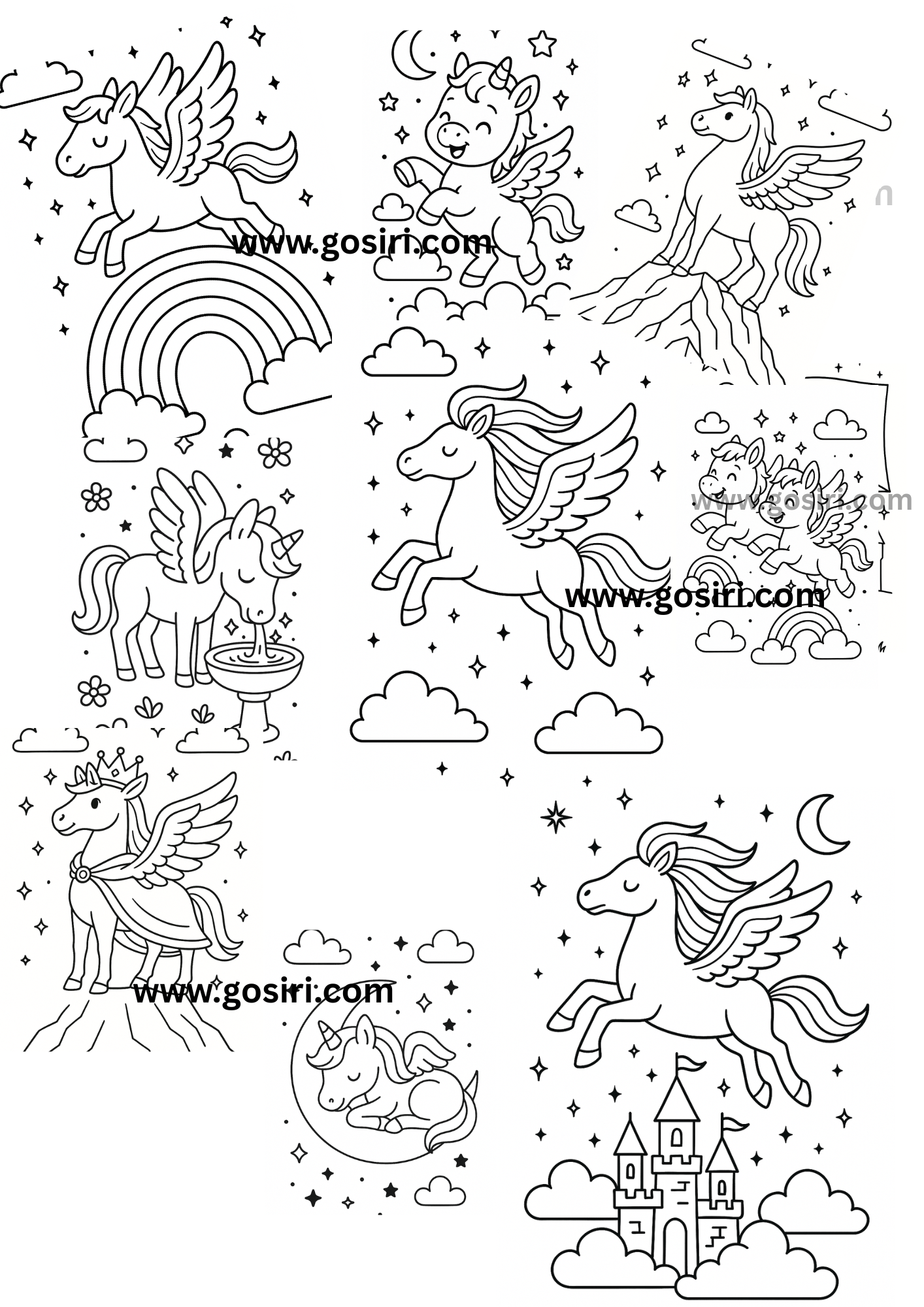 Printable Coloring Book – Pegasus & Flying Horses! 🦄☁️
